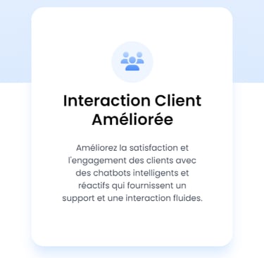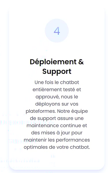 Découvrez la simplicité et l'efficacité de l'intégration de nos solutions de chatbots IA pour améliorer les performances de votre entreprise.